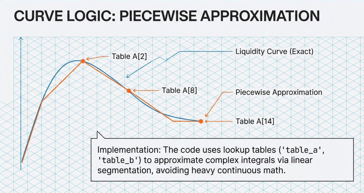 Instead of using a mathematical curve (like x * y = k), Humidifi uses lookup tables for pricing: